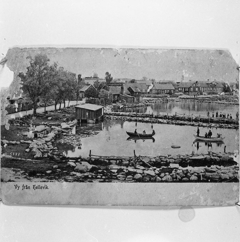En stilla och fridfull sommarmorgon någon gång under 1900-talets första år. Fotot är taget från "Byggningens" andra våning, ungefär där fiskemuseet nu ligger.